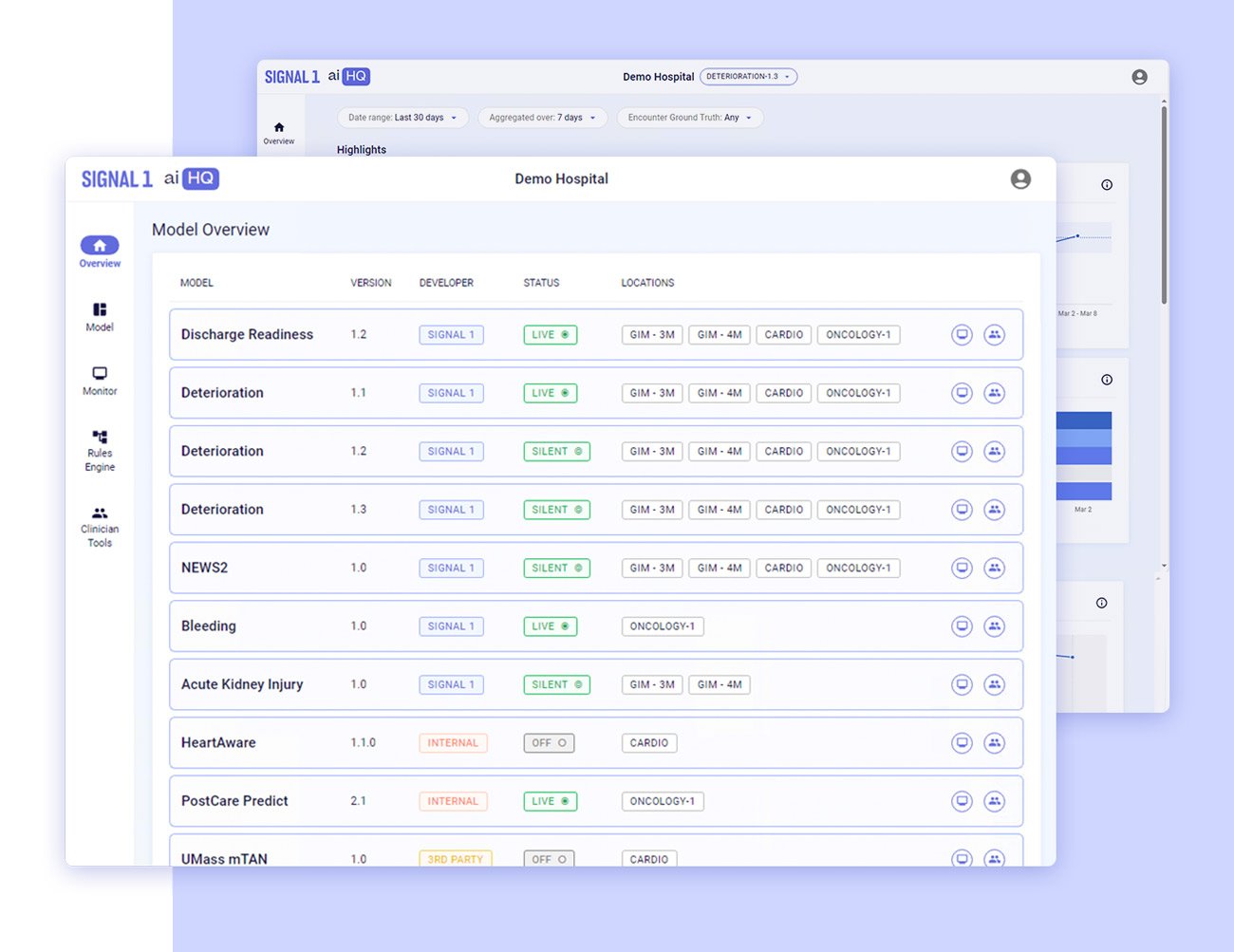Get started with Signal 1’s out-of-the box AI applications targeting key operational and clinical pain points.