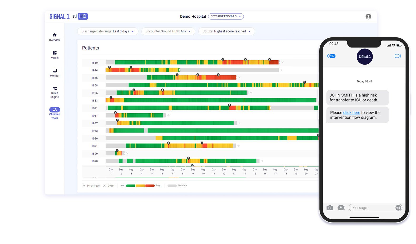 We detect which patients are at high-risk for clinical deterioration and notify care teams in real-time.*Signal 1 Deterioration Solution not yet available for sale. Investigational use only.
